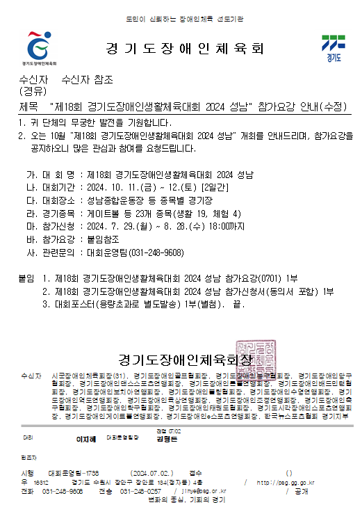*대회명 : 제18회 경기도장애인생활체육대회 2024 성남