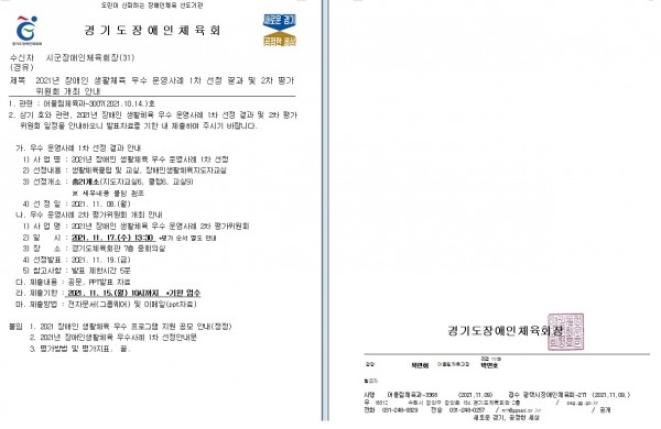 2021년 경기도 장애인 생활체육 우수 운영사례 1차 선정 결과 및 2차 평가위원회 개최 안내